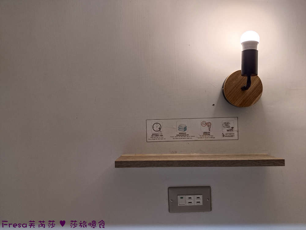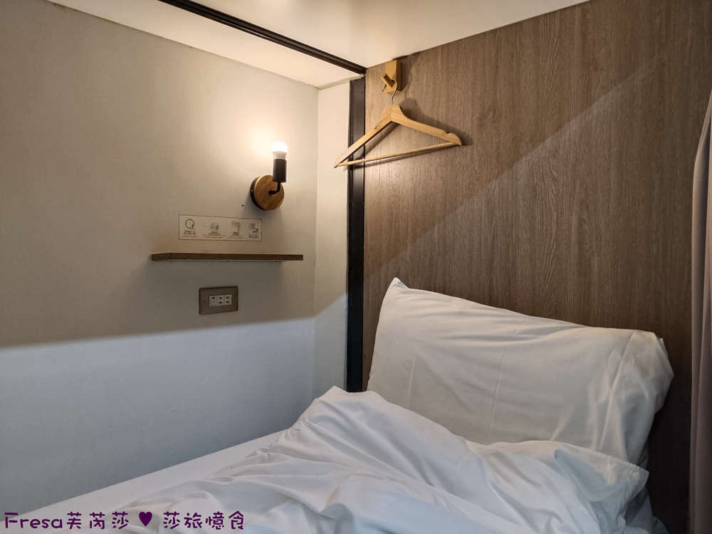 每個床位有平台、插座、小燈、掛衣架.