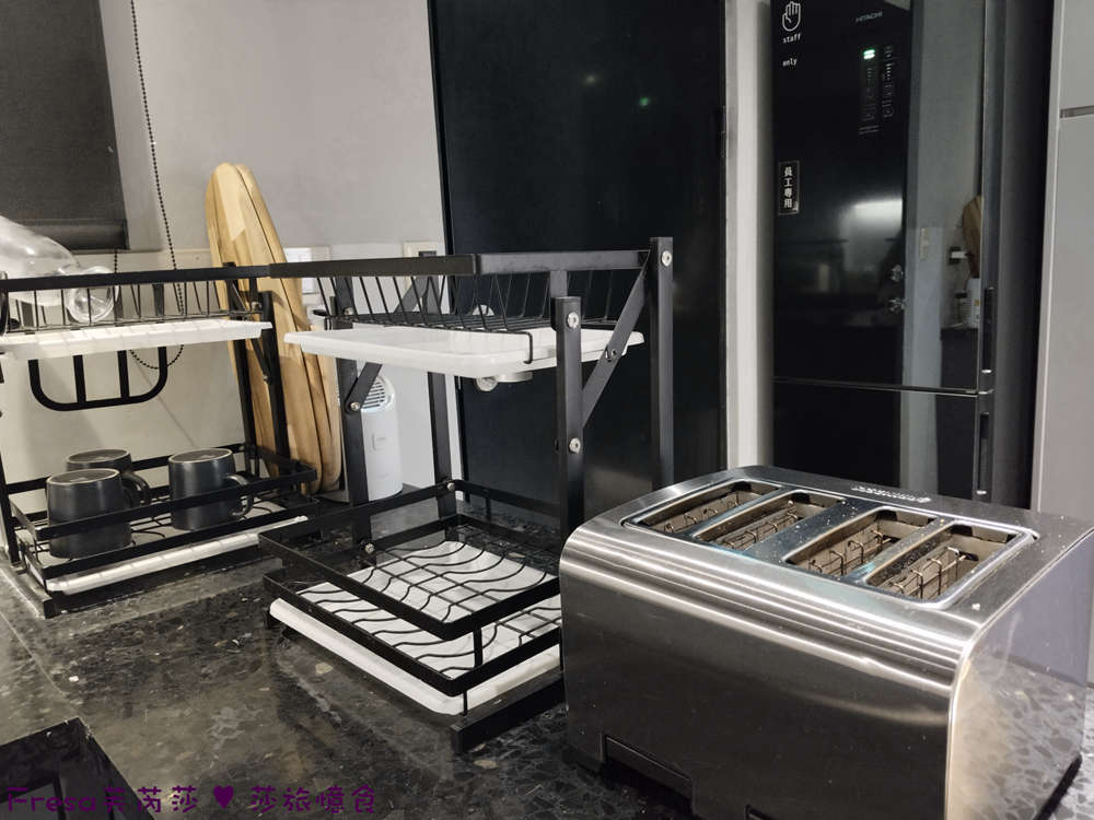 還有規劃小廚房,微波爐、烤箱、冰箱,設備齊全.