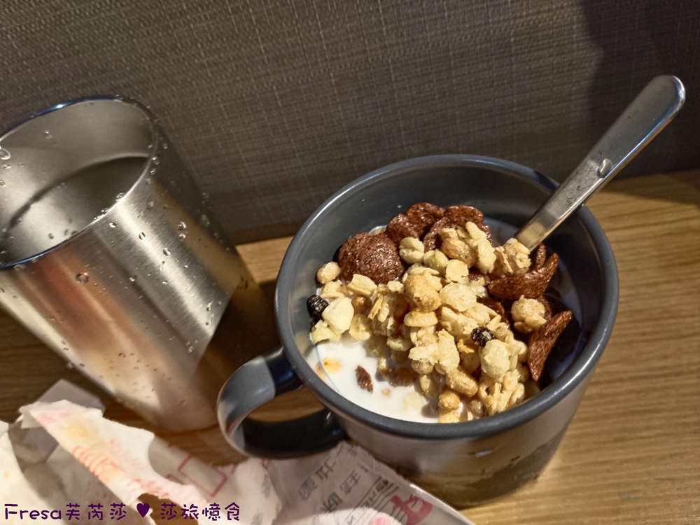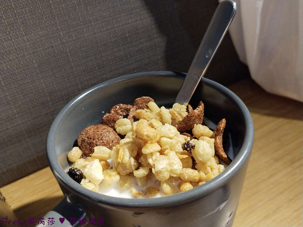 冰箱旁邊還有玉米麥片、巧克力麥片.