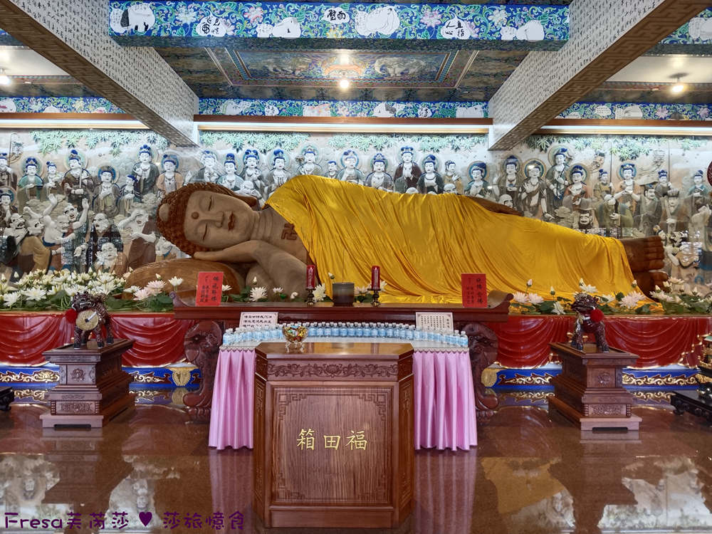殿內融合中韓佛教藝術,工程浩大,巨大臥佛非常莊嚴神聖,令人屏息.