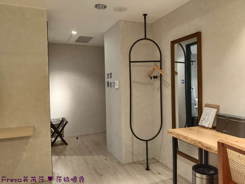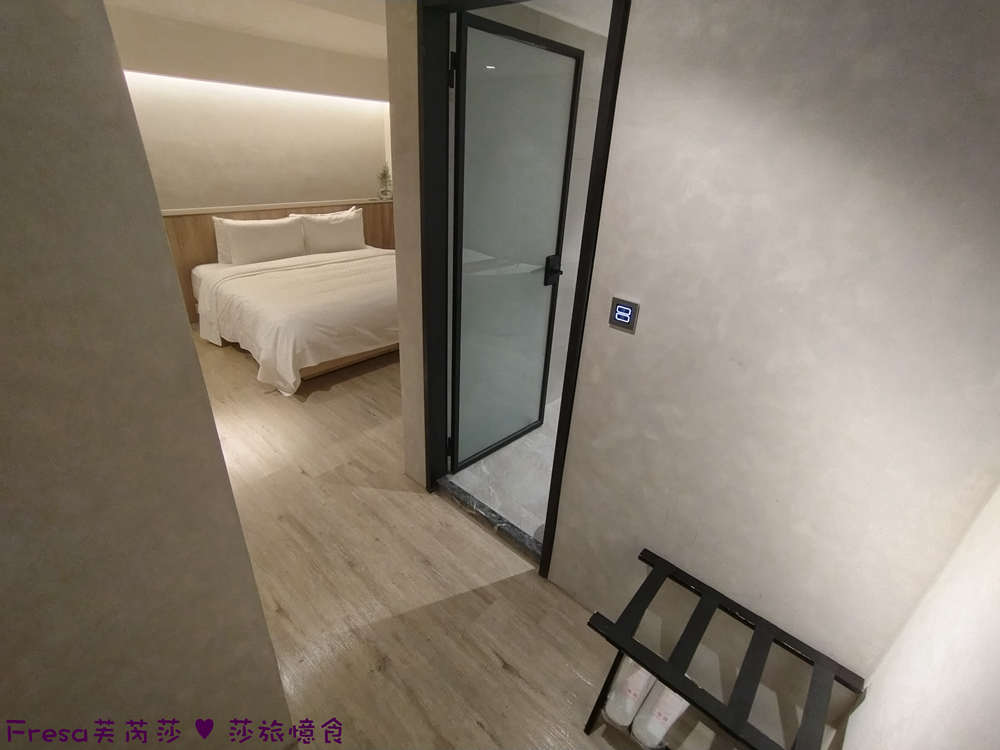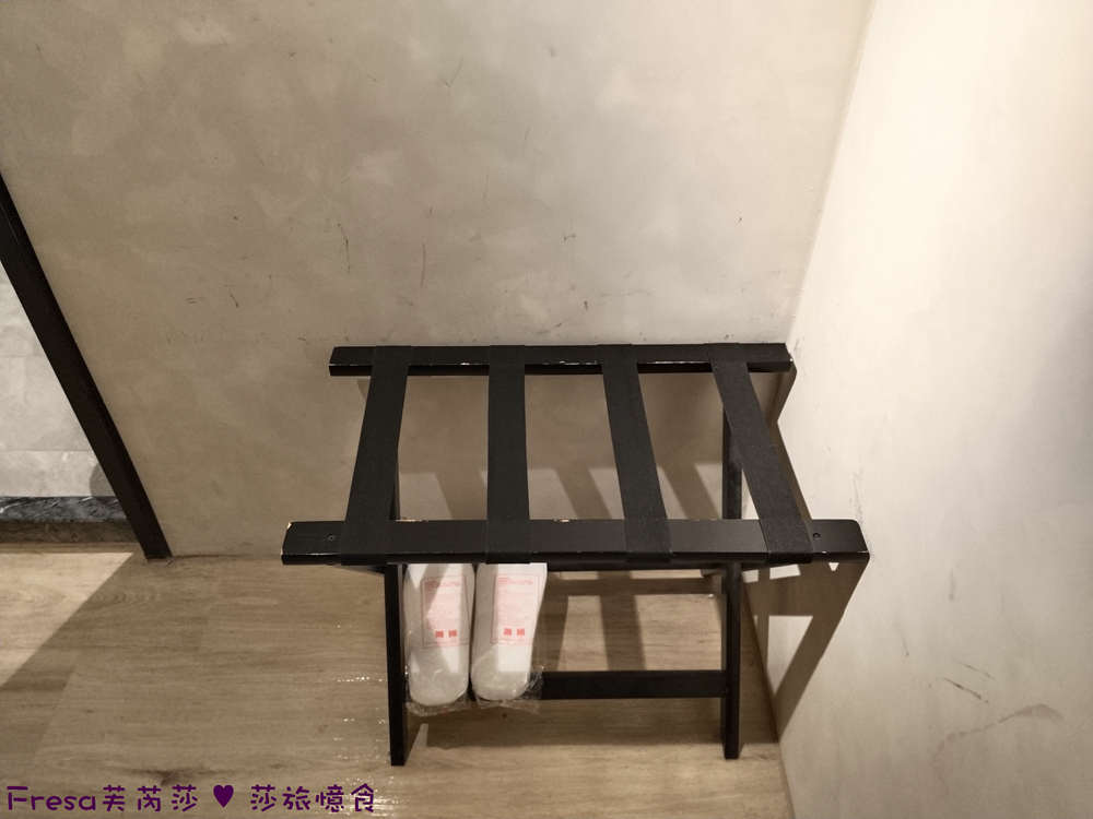 推開門後,有個玄關空間,擺放行李架.