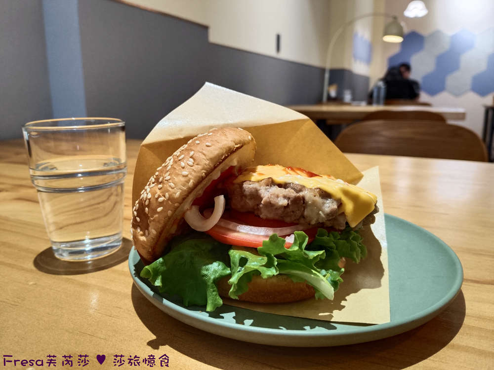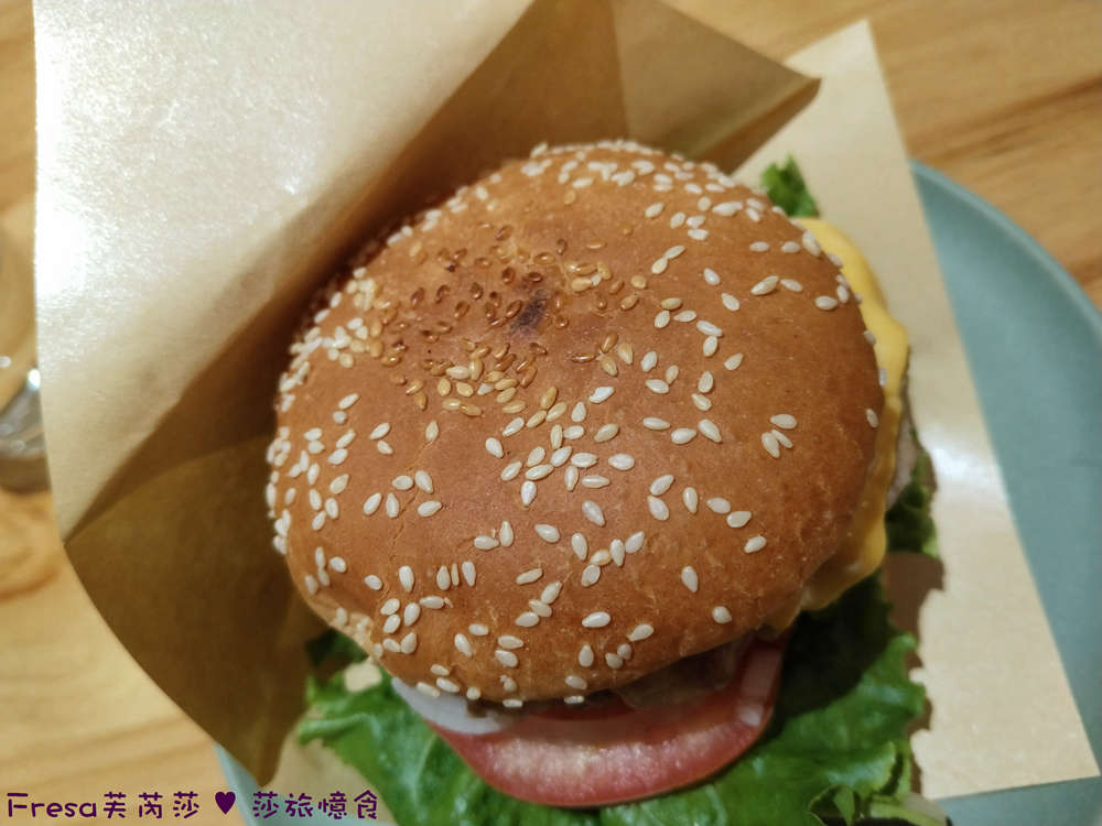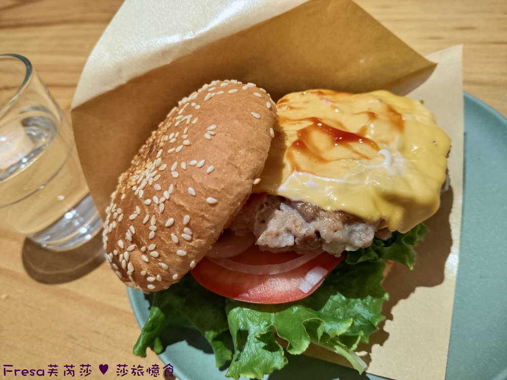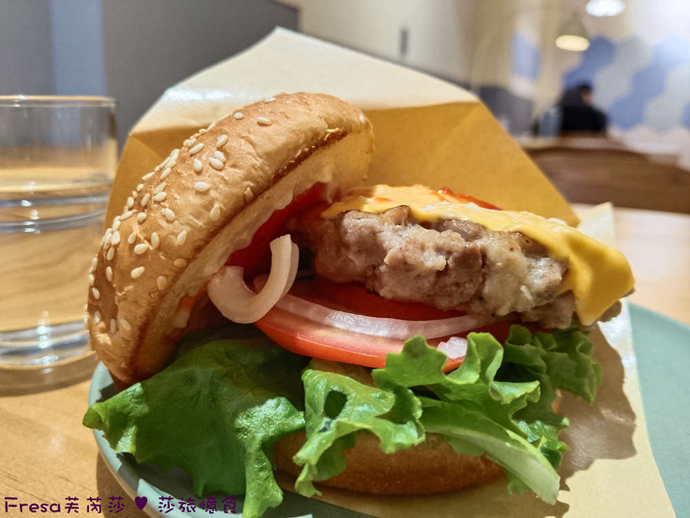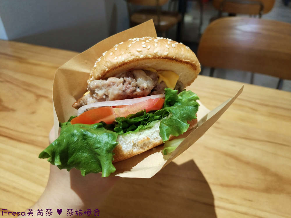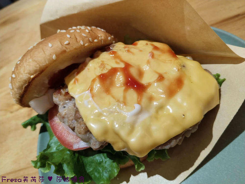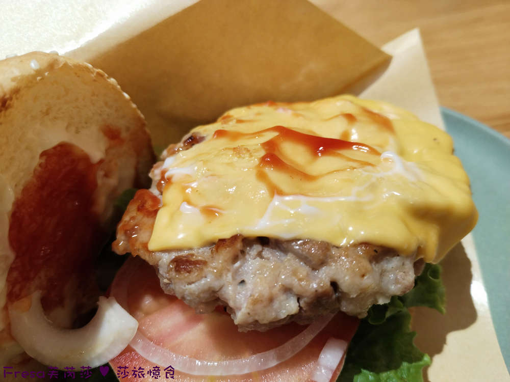 厚實的豬豬漢堡排,一口咬下,立刻在嘴裡釋放肉汁.