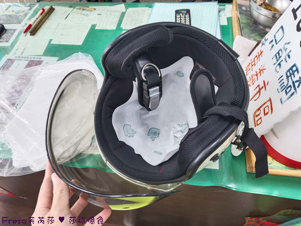 有免費行李寄放、一次性安全帽襯、輕便雨衣.