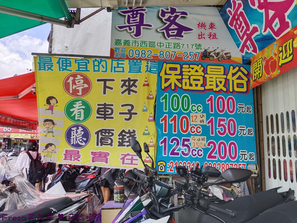 租100c.c.機車,一天只要100元,只能騎嘉義市區!